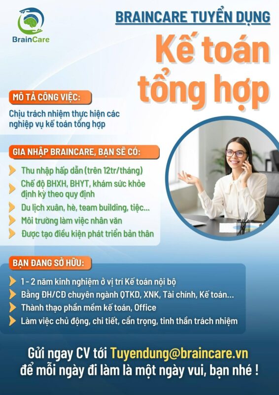 BrainCare tuyển dụng vị trí kế toán tổng hợp
